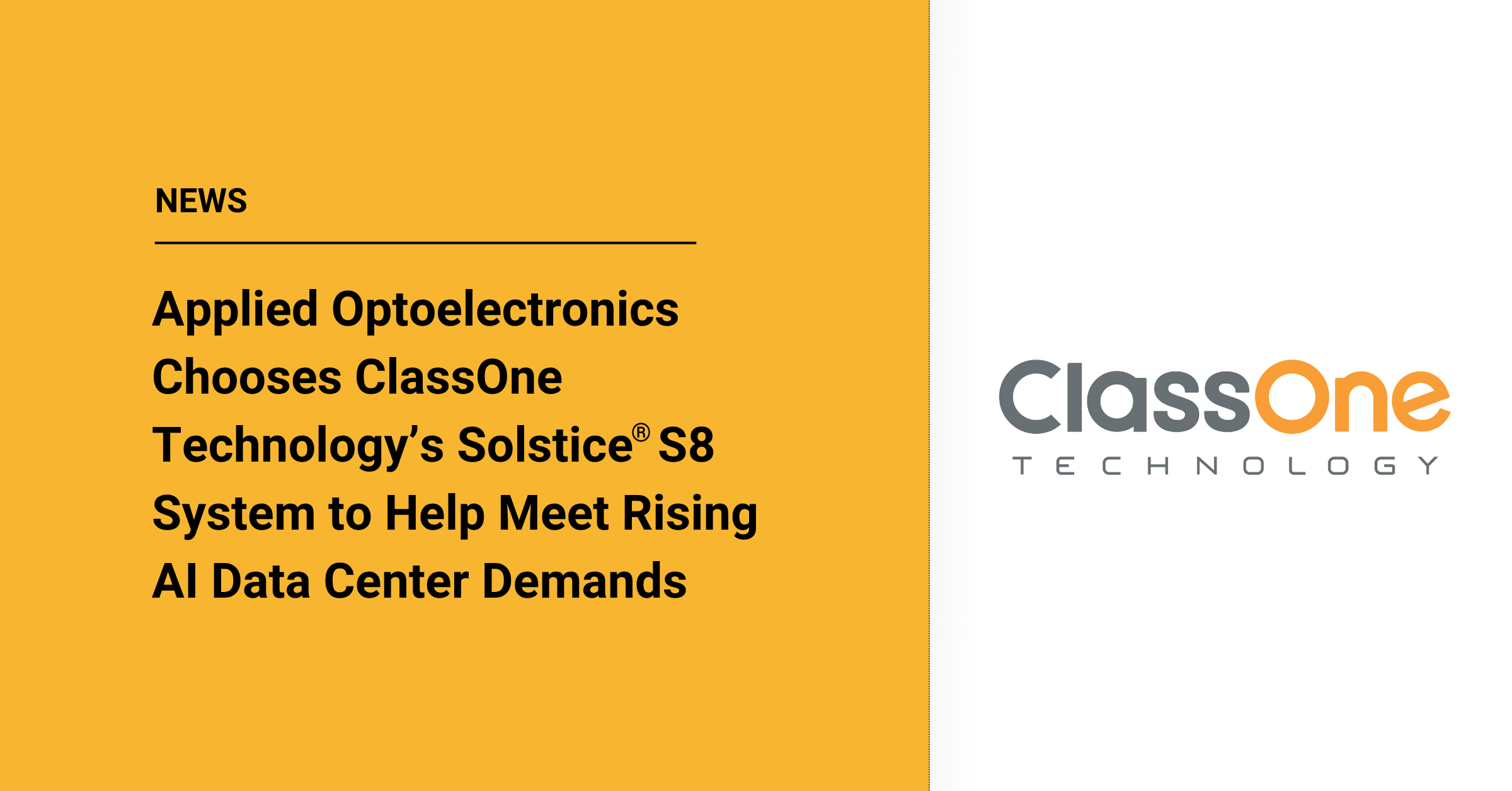 Applied Optoelectronics Chooses ClassOne Technology’s Solstice® S8 System to Help Meet Rising AI Data Center Demand