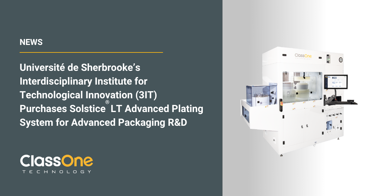 Université de Sherbrooke’s Interdisciplinary Institute for Technological Innovation (3IT) Purchases ClassOne Technology Solstice® LT Advanced Plating System for Advanced Packaging R&D